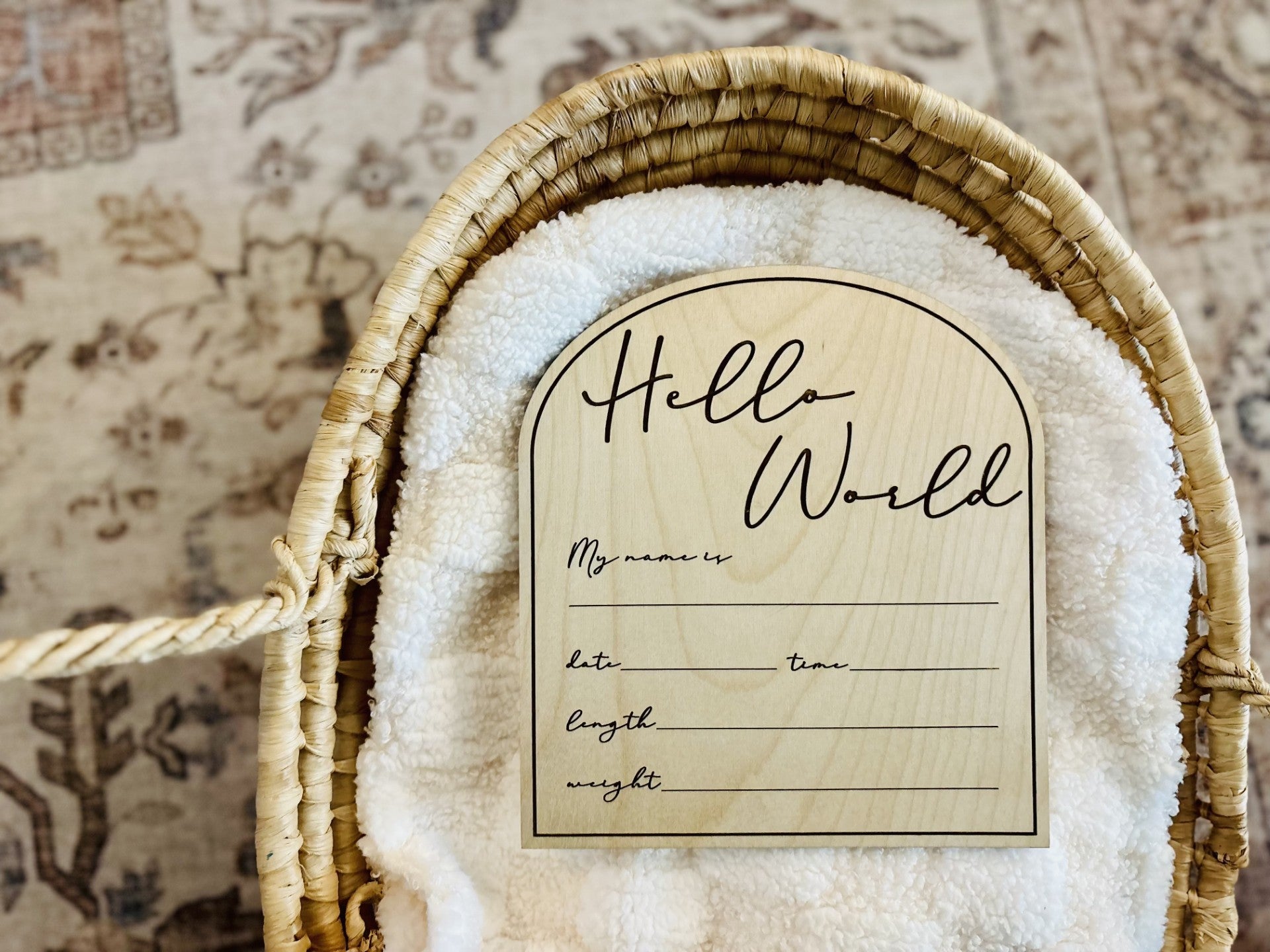 Celebrate the arrival of your little one with our "Wildflowers" Arch Stat Board—a beautiful and timeless keepsake to mark this special moment. Crafted from high-quality UV Birch wood, each sign is unique, with natural variations in grain, color, and knots, ensuring that every piece is one of a kind.