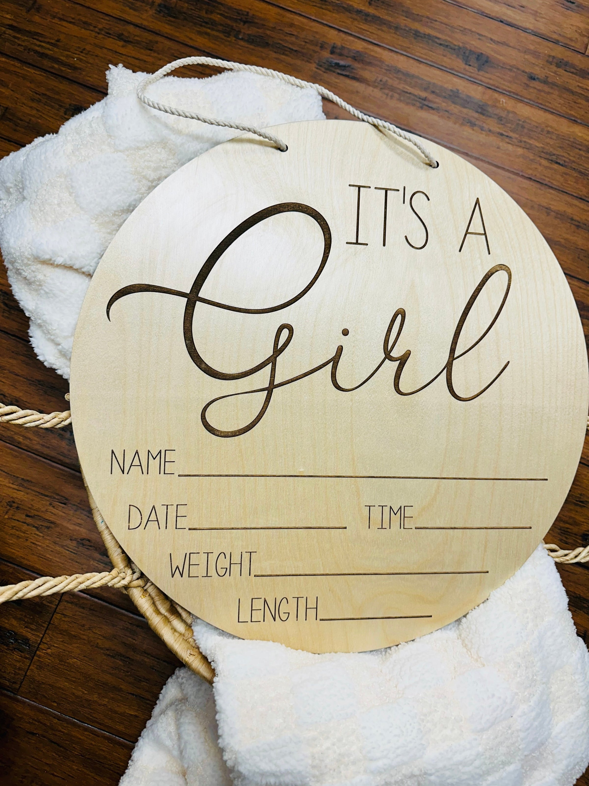 Celebrate the arrival of your little one with our "It's a Girl!" Door Hanger Stat—a beautiful and timeless keepsake to mark this special moment. Crafted from high-quality UV Birch wood, each sign is unique, with natural variations in grain, color, and knots, ensuring that every piece is one of a kind.