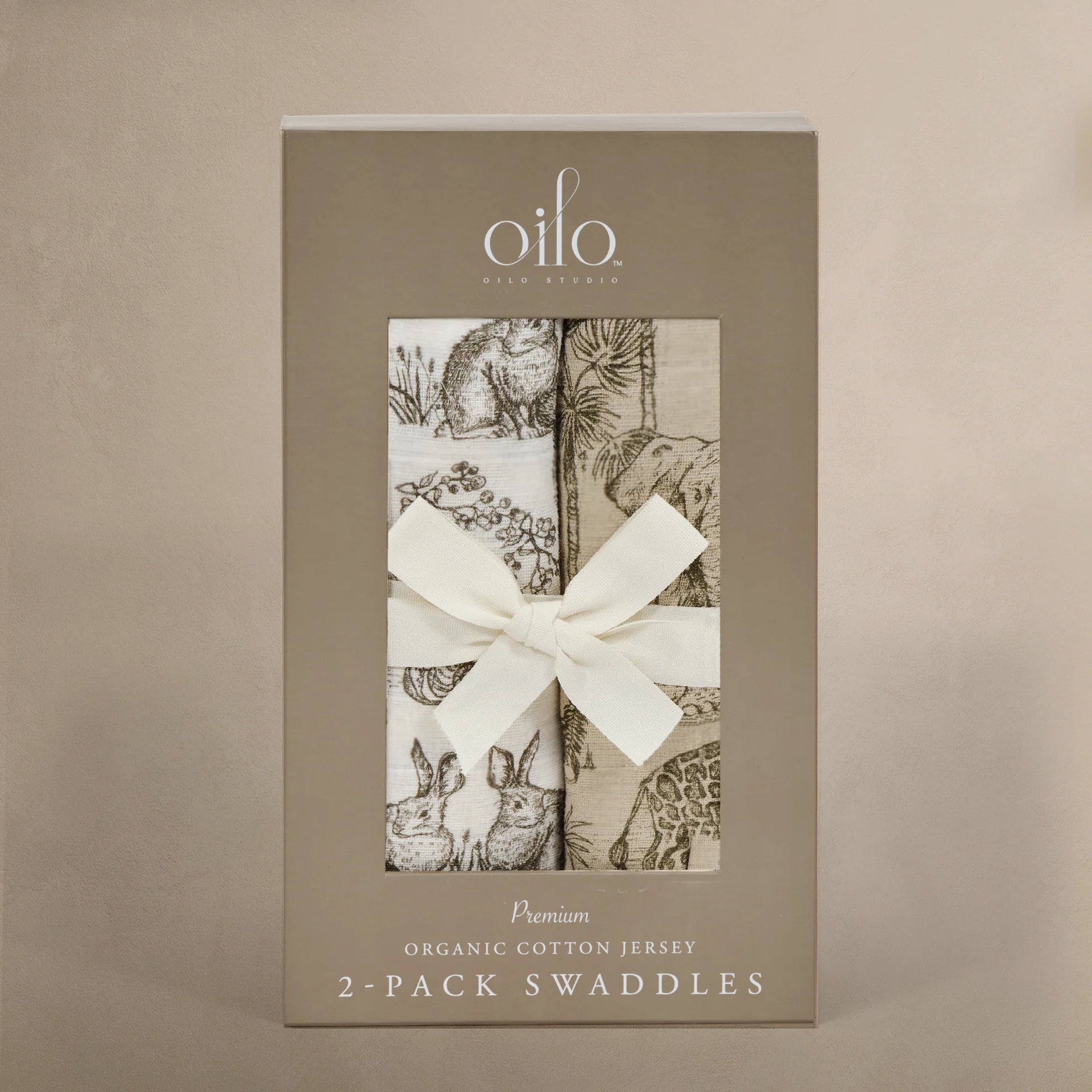 Oilo Vintage Safari & Woodland Nursery Jersey Swaddle Blanket Set