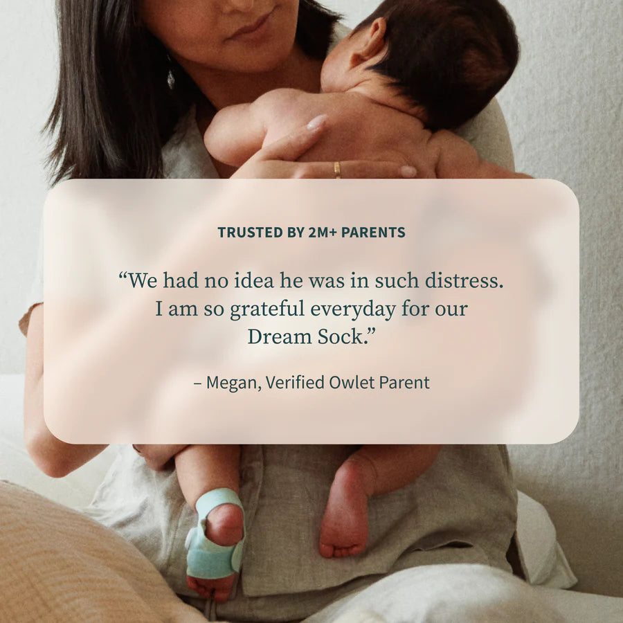 Dream Sock® goes beyond traditional monitors that only pick up sound or movement. As the only FDA-cleared smart baby monitor of its kind, it uses the same pulse oximetry technology trusted by hospitals to track your baby’s pulse rate and oxygen level in real time. You’ll receive real-time notifications if readings fall outside safe zones, so instead of worrying, you can rest assured you’ll be alerted when it truly matters. Plus, the Owlet Dream App provides personalized sleep insights to help your little one sleep soundly, and give you the peace of mind (and rest) you deserve.