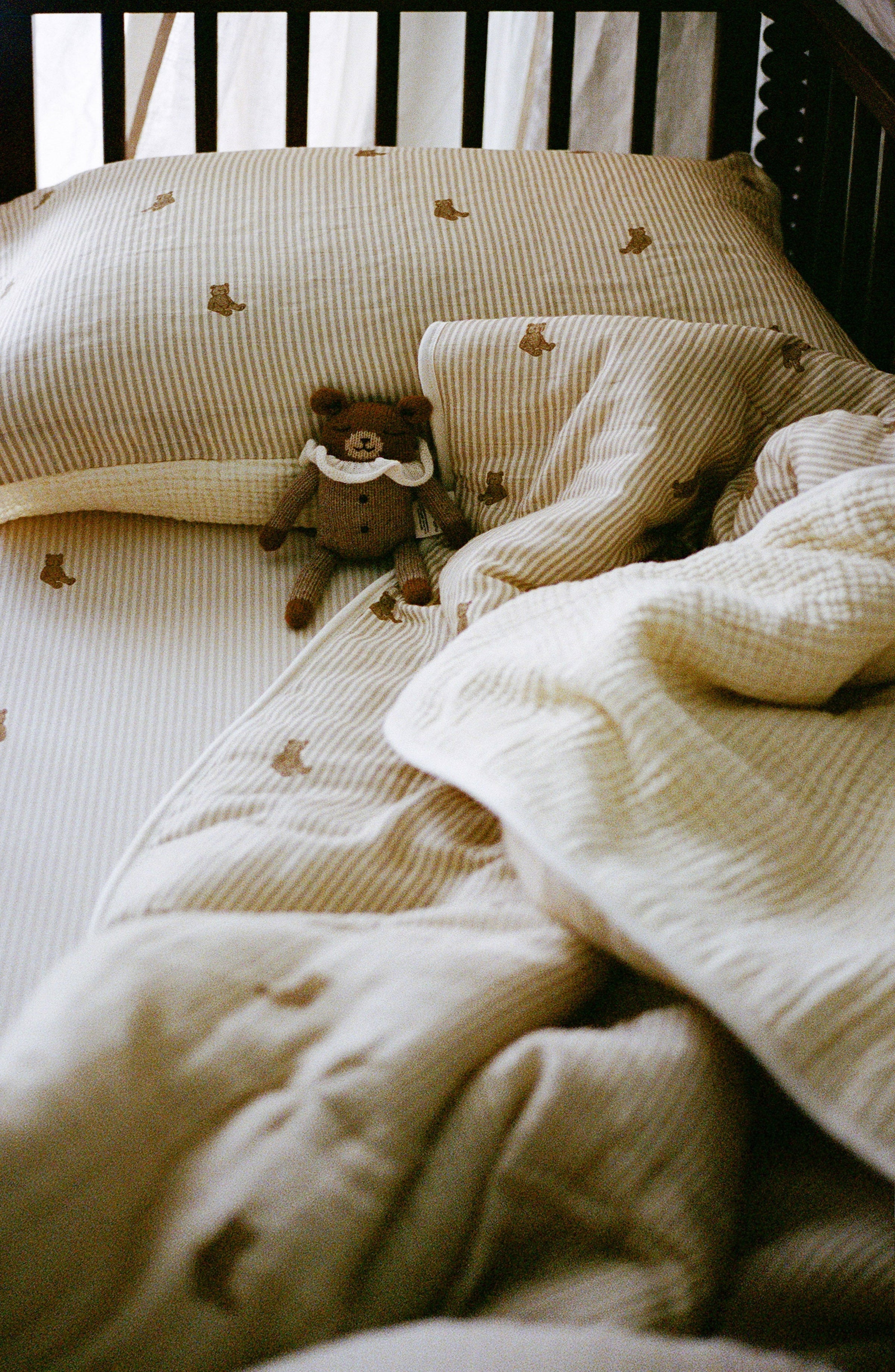 Our exclusive Bear crib sheet is made to give your baby the comfiest most luxurious sleep imaginable -without compromising any of your nursery's style. Every detail of Oilo's jersey fitted cotton crib sheet, made with 100% organic cotton jersey, is carefully considered to help create the perfect sleep environment for your baby, so you can rest assured knowing you're giving your little one the best care possible.