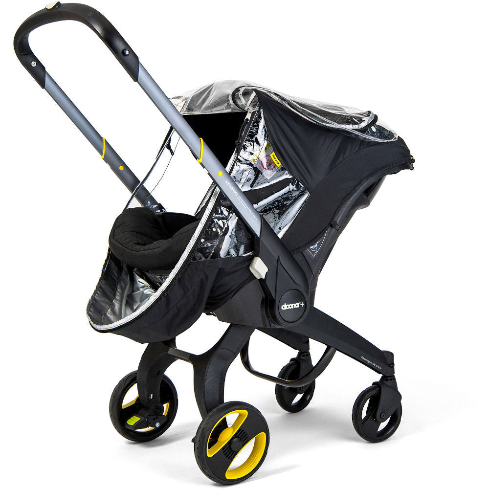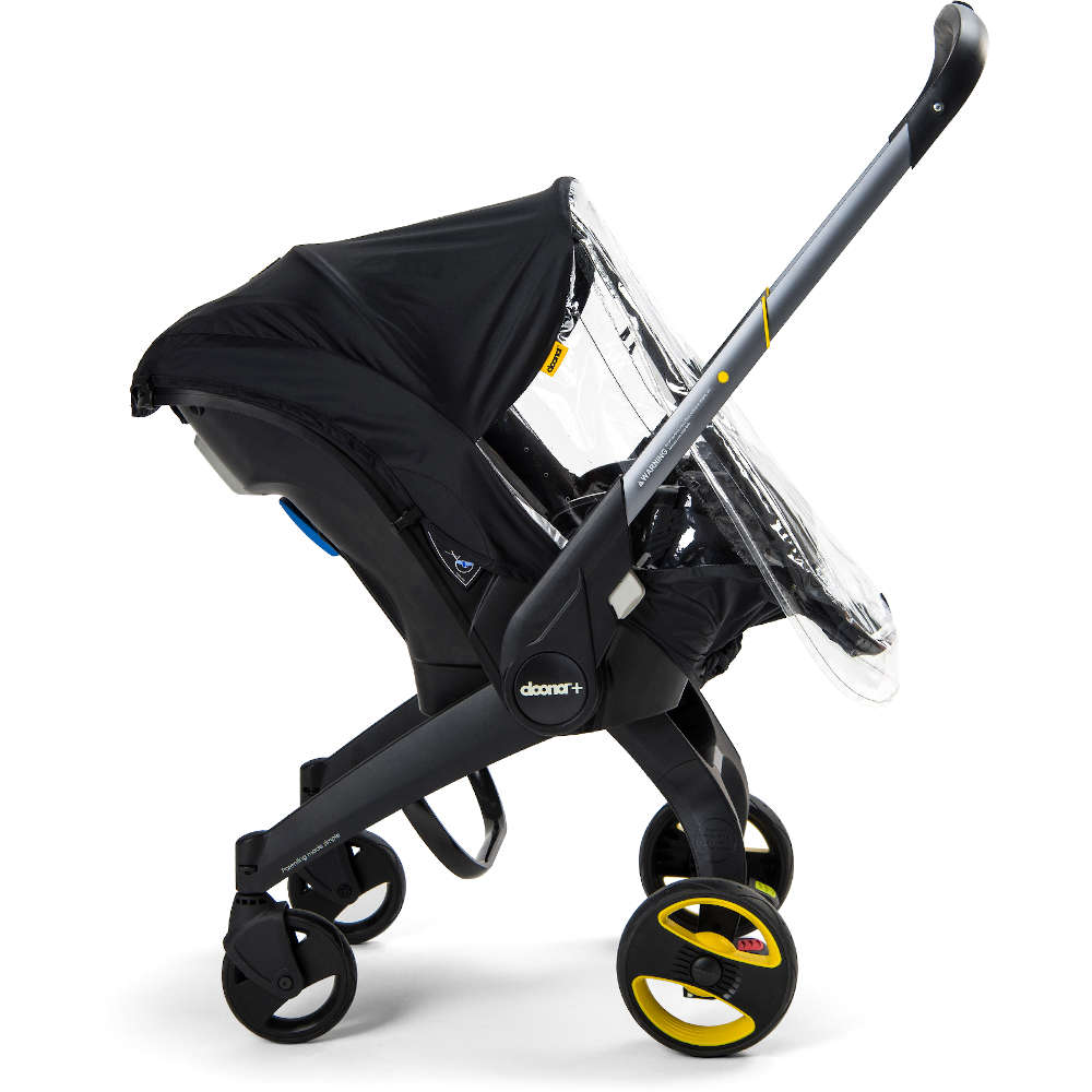 The Doona™ Rain Cover is made of baby-safe materials. It has side ventilation holes to ensure that your baby is always comfortable, safe, and dry. The wide zipper opening provides easy access to your baby. With the simple Doona snap-on connectors, attaching and removing the rain cover is quick and easy. A compact carry bag for easy storage when not in use is included.