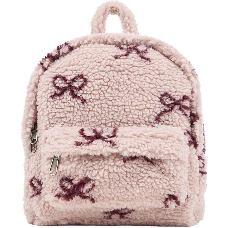 Our shearling Mini Backpack features a main zipper compartment, a front pocket, adjustable shoulder straps, and a top handle—ready to be carried any way your little one likes.