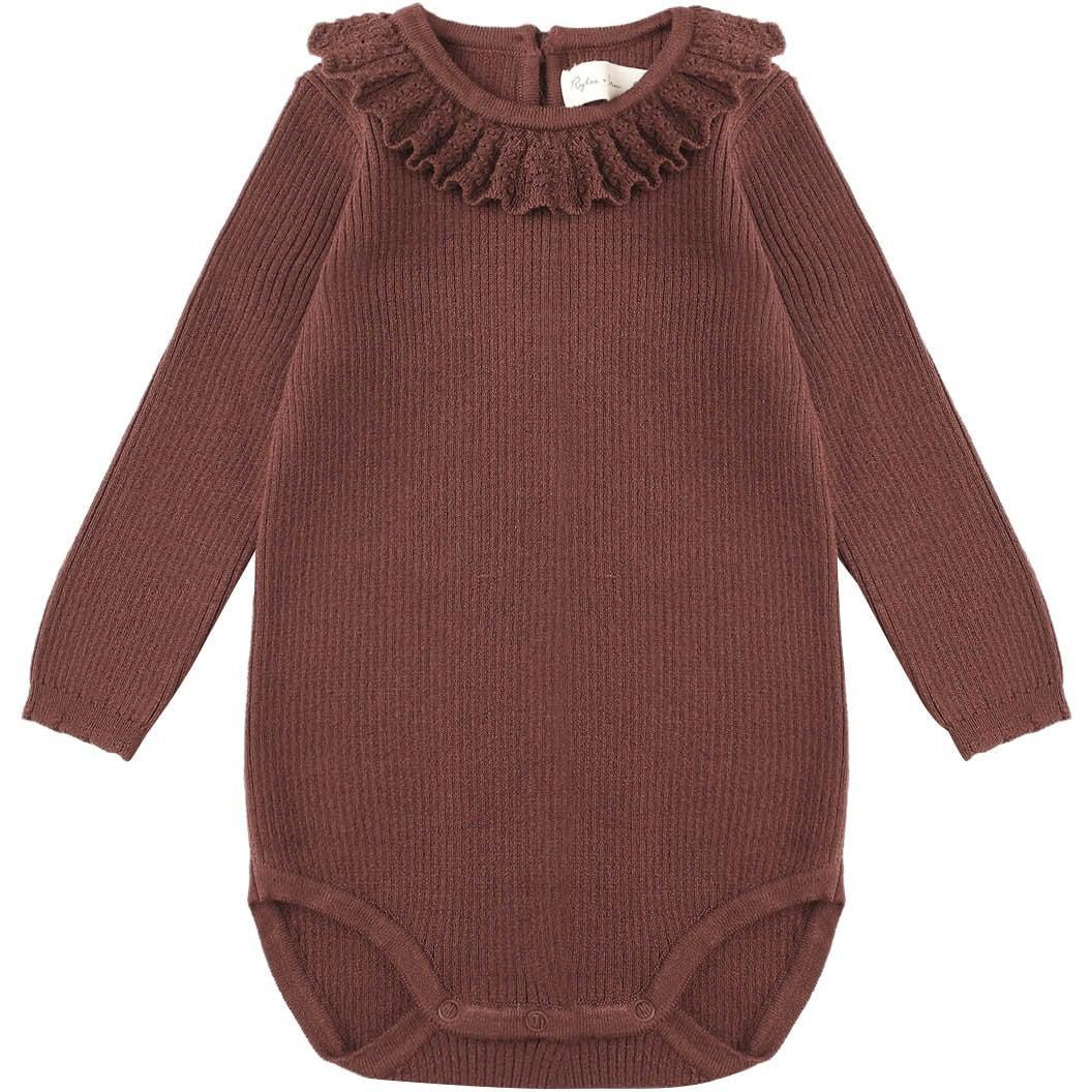 An essential for your little one, this darling knit bodysuit features a sweet ruffle collar, back keyhole button closure, and bottom snaps for effortless changes. Perfect for layering all season long.
