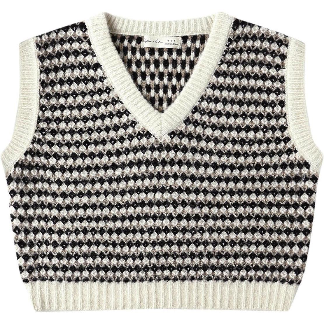 This preppy, boxy-fit Sweater Vest features a classic v-neckline, dropped shoulders, and ribbed trim at the hems for a vintage look.