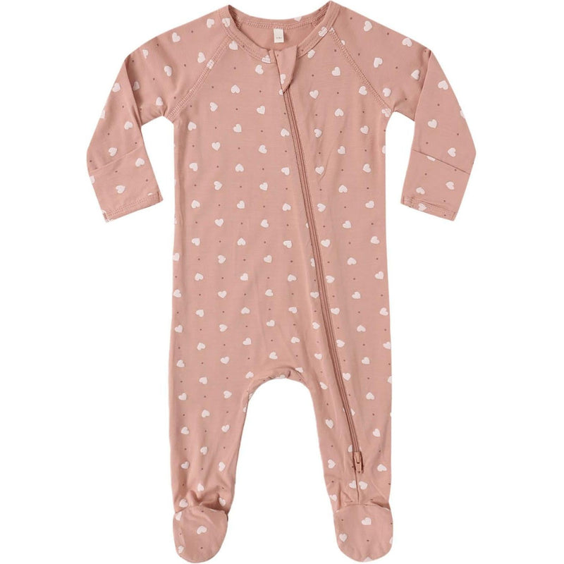 Quincy Mae Bamboo Zip Footie || Pink Hearts