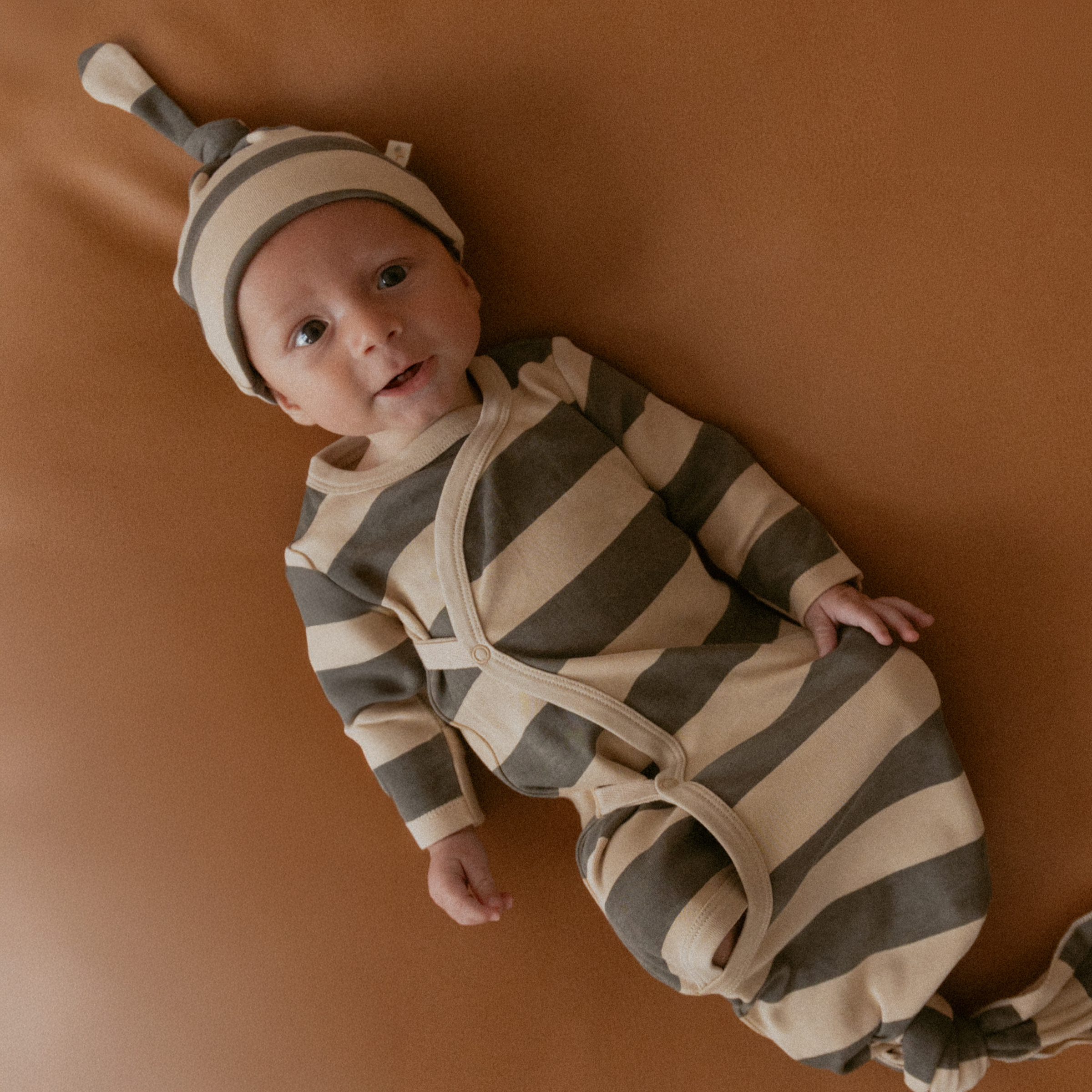 Makemake Organic Kimono Knotted Sleep Gown | Bold Stripes