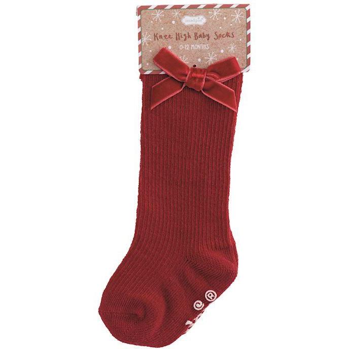 Mud Pie Red Tall Christmas Bow Sock
