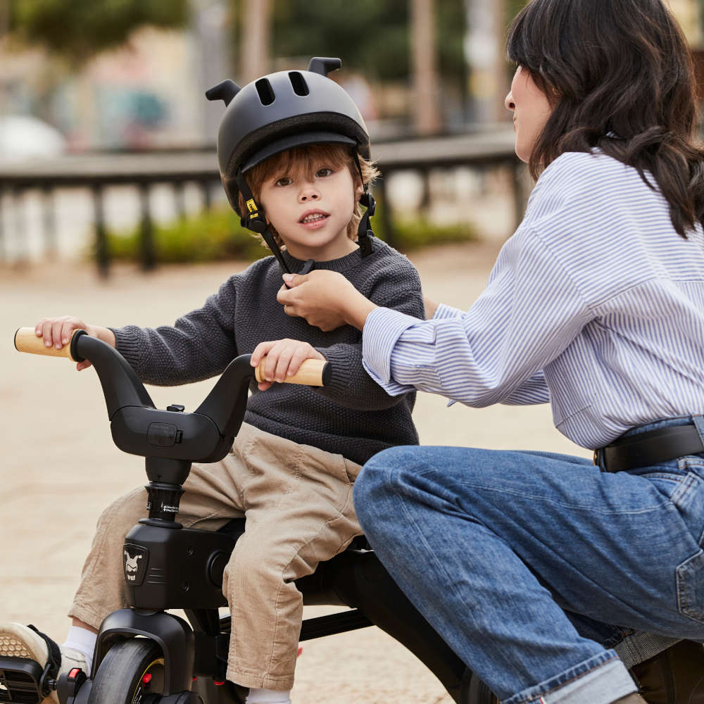 With its distinctive silicon horns and sleek matte black design, the Liki Helmet is a true standout. The helmet's detachable visor offers sun protection and effortless cleaning, while the strategically placed air flow openings promote optimal ventilation, keeping your child cool and comfortable during any adventure.
