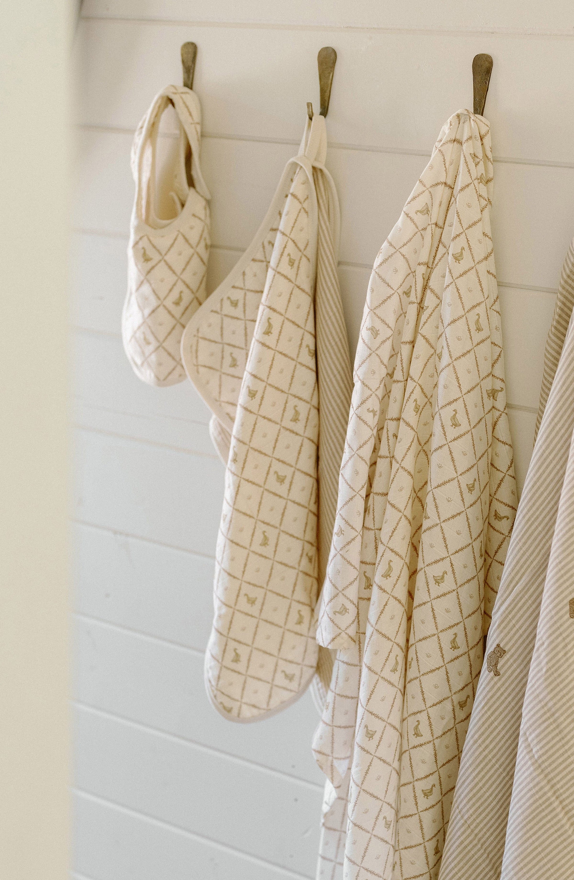 These luxurious muslin, Bear brown striped and Duck bibs, are crafted from organically grown 5-layers of premium 4-way organic cotton muslin. Beautiful muslin print on one side, and 4 layers of solid color muslin on the other side, providing enhanced absorption for spills and messes. Woven with the utmost care using the finest yarn, this results in a wonderfully textured fabric that’s exquisitely soft to the touch and remarkably lightweight, all while maintaining its lasting strength.