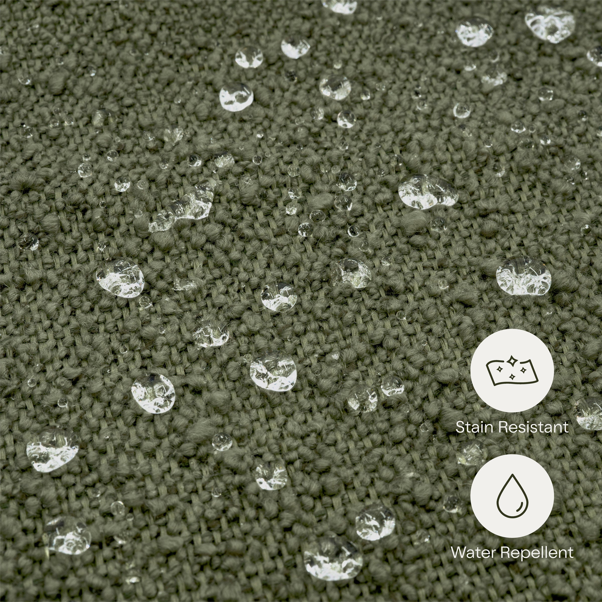 • TEXTURE-RICH FABRIC: Upholstered by hand in texture-rich fabrics.