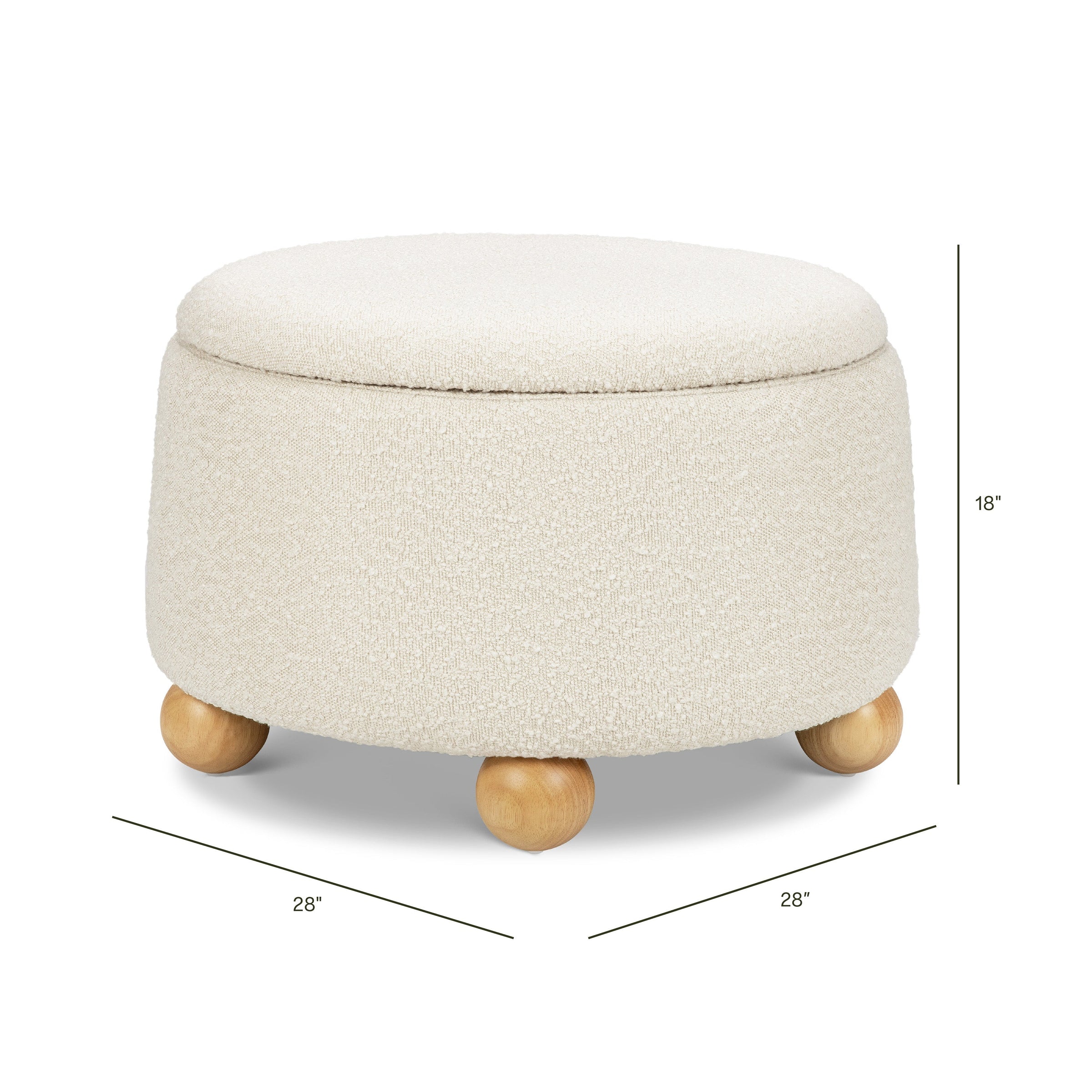The Tuffet Storage Ottoman combines style and function with its plush upholstery and versatile design. Wooden ball feet add a distinctive touch while providing sturdy support, and the removable lid reveals a spacious interior for convenient storage. Perfect as a footrest, extra seating, or an elegant organizational solution.