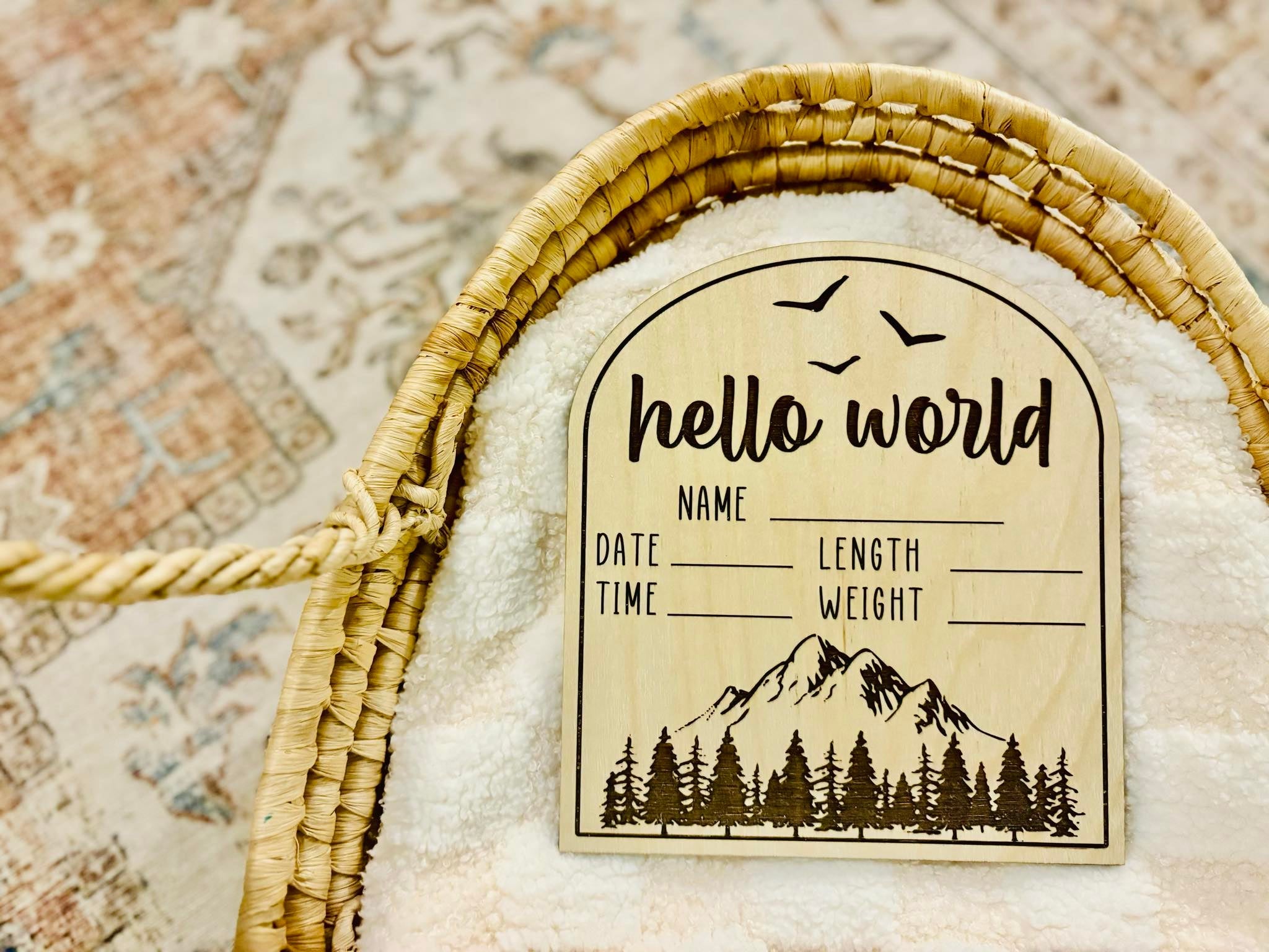 Celebrate the arrival of your little one with our "Mountains" Arch Stat Board—a beautiful and timeless keepsake to mark this special moment. Crafted from high-quality UV Birch wood, each sign is unique, with natural variations in grain, color, and knots, ensuring that every piece is one of a kind.