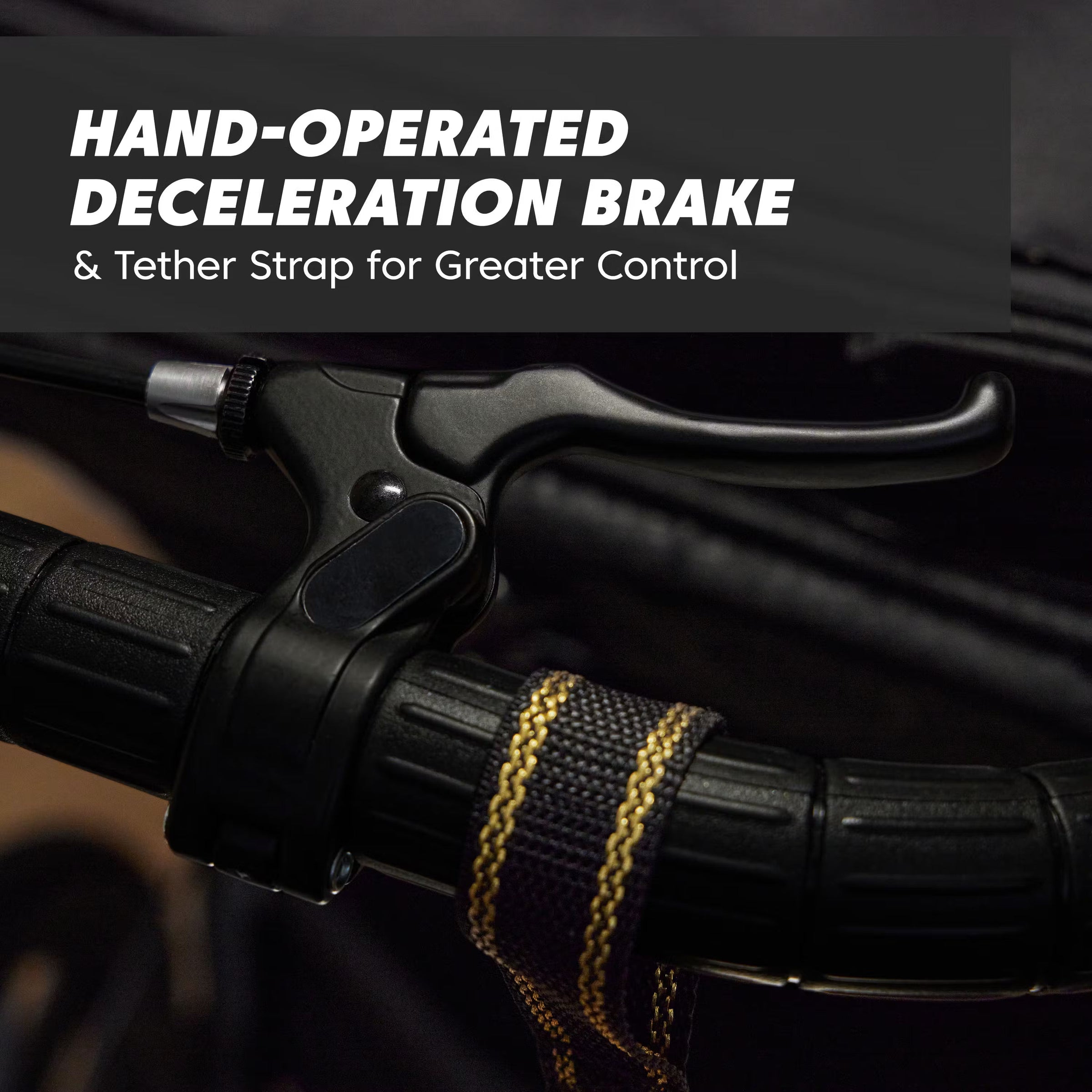 - The unique, hand-operated deceleration brake and handlebar tether strap keep you in control whether you need to head downhill or pick up the pace