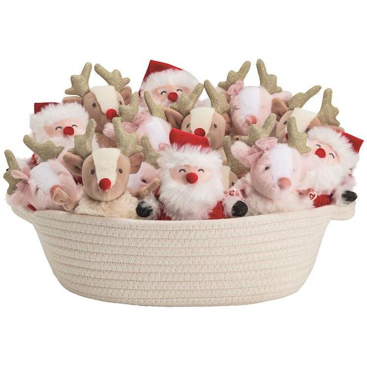 Faux fur pom plush pal with weighted seat.